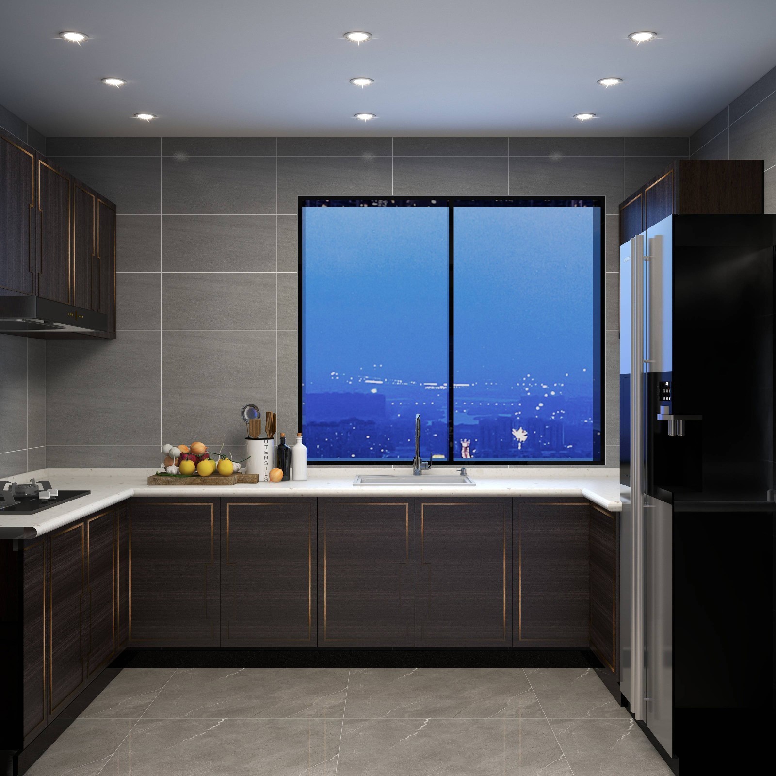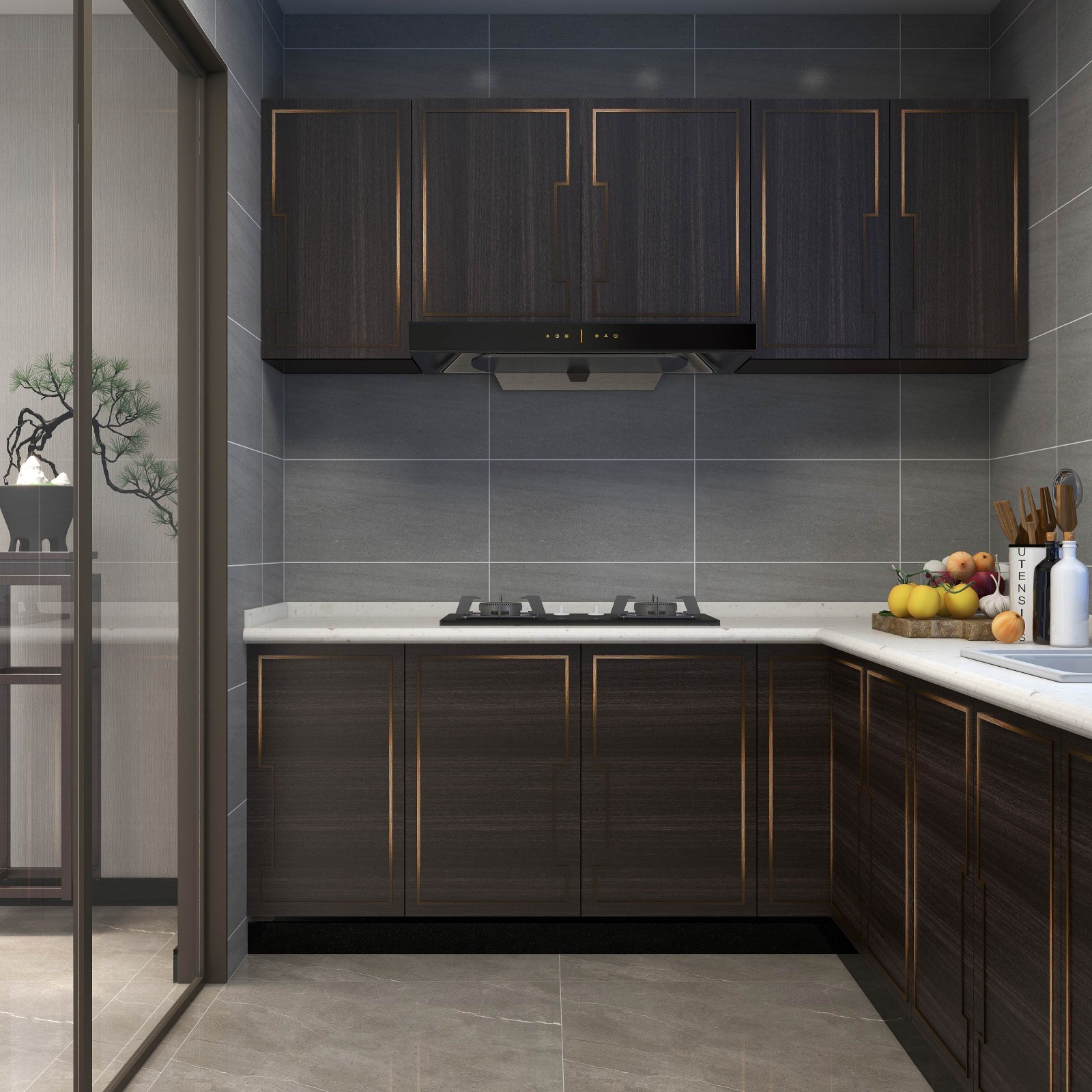 深色柜體搭配淺色臺(tái)面空間更具層次