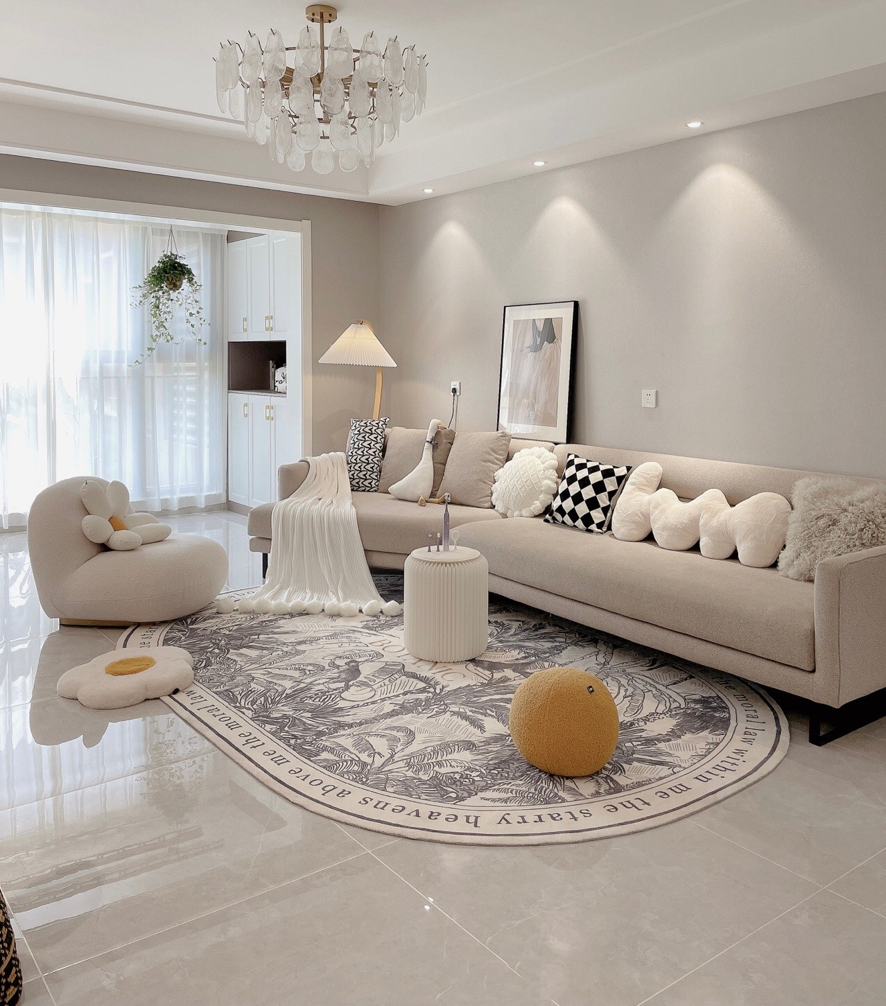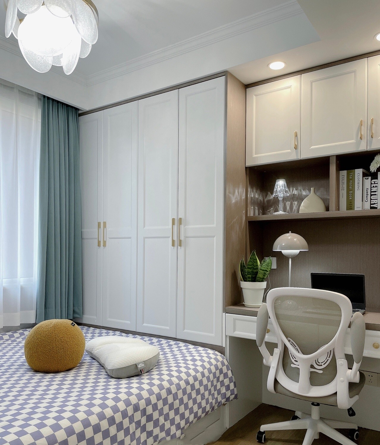 淺灰墻面配上簡單吊頂搭配上軟裝顯得空間大