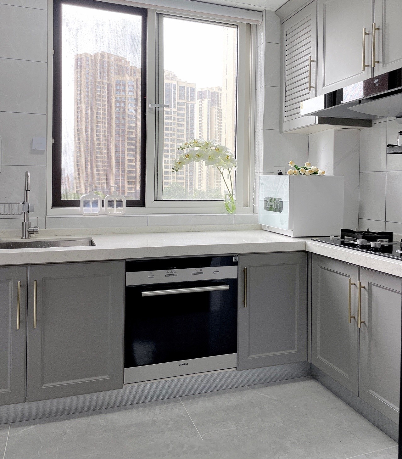 混搭輕奢風(fēng)淺灰色地磚給人一種舒適感