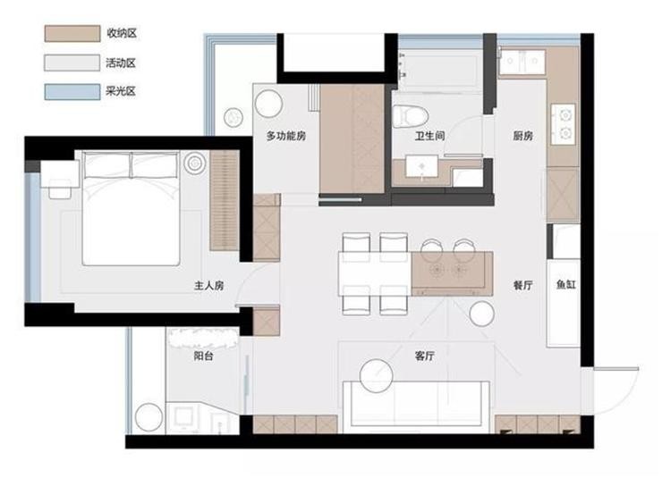 餐廳客廳有機結(jié)合,增強空間感,出入自由。