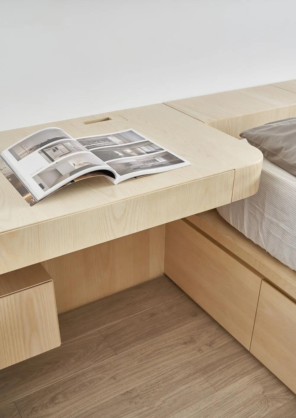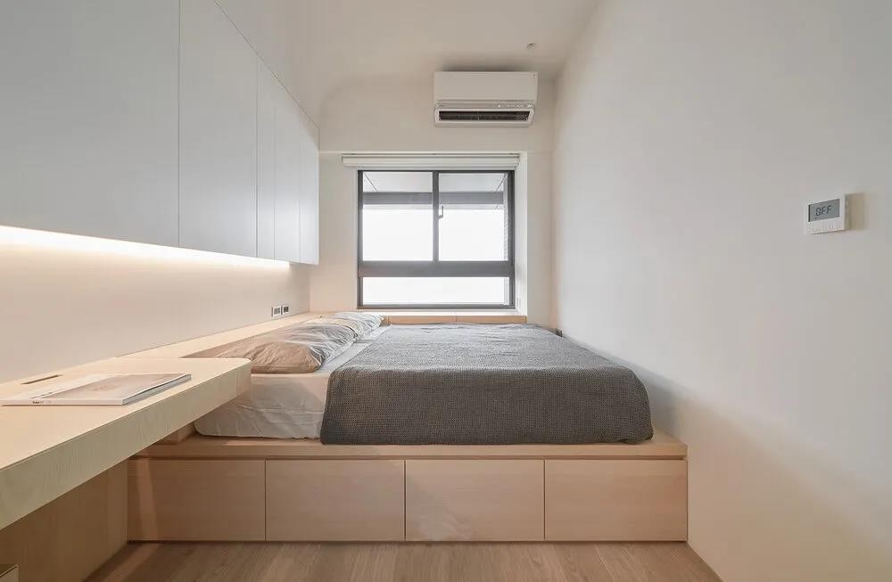 也因空間關系所以床架設計成臥榻形式,下方可以做成收納