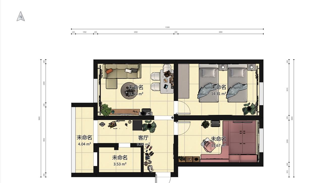 此戶型比較方正 缺點是沒有客廳和餐廳 經改造后增加客廳和餐廳 配套齊全使用方便