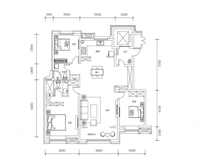 格局方正,布局合理,功能區(qū)域分布清晰。