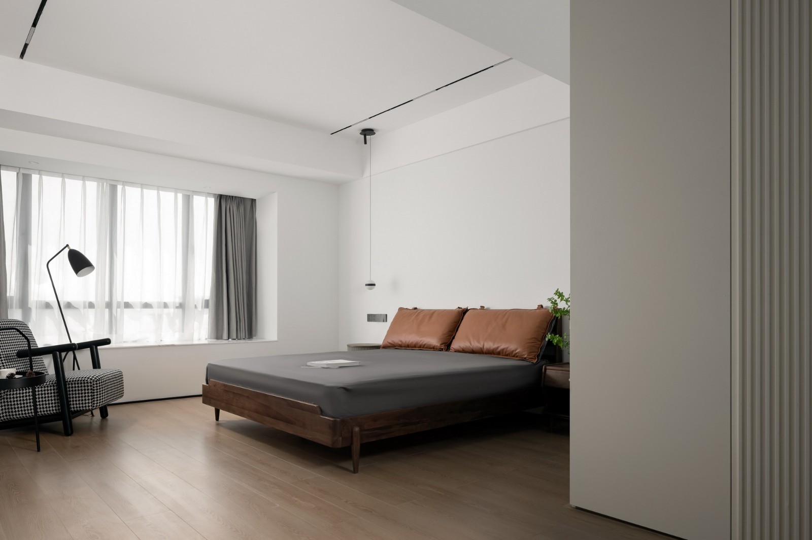 主臥的設計延續(xù)了空間的整體風格,以簡約線條和色塊打造寧靜自然的睡眠空間,柔軟之處體現(xiàn)于家具單品的質感,構建身體尺度的舒適與放松。干凈利落的線條在立面上充分延展空間,低調與自然盡數(shù)展現(xiàn),洗凈***的疲憊,靜享好睡眠。