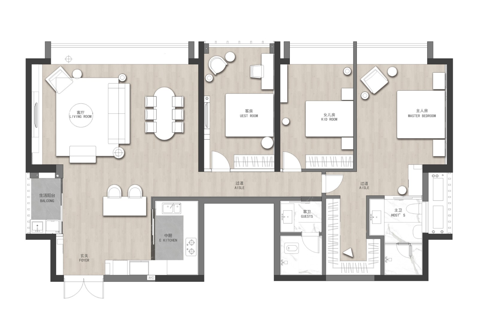 本案為五口之家,業(yè)主夫婦平日工作繁忙,節(jié)奏快壓力大,希望新家是個能讓人身心放松,有溫度的空間。設計團隊在充分尊重業(yè)主喜好的同時適當?shù)赝ㄟ^空間語言去表現(xiàn)“家”的意義,秉承隨性自然的設計理念,使之成為家庭情感的聯(lián)結。