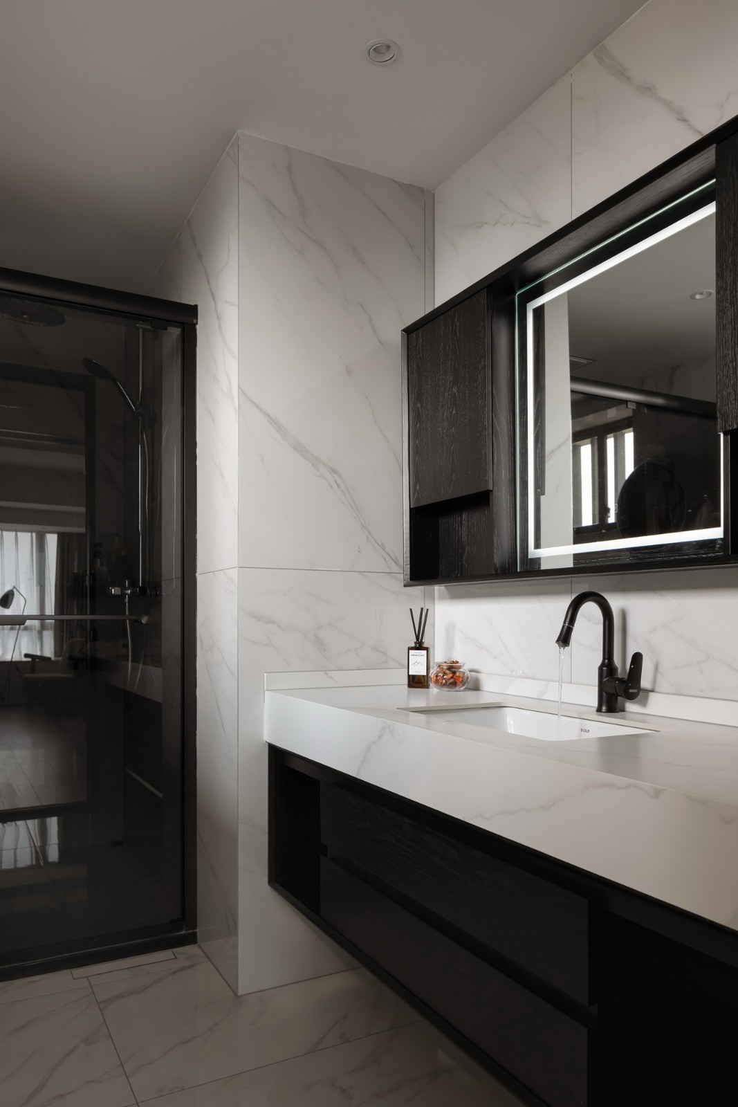 衛(wèi)生間采取黑白兩色的簡潔搭配