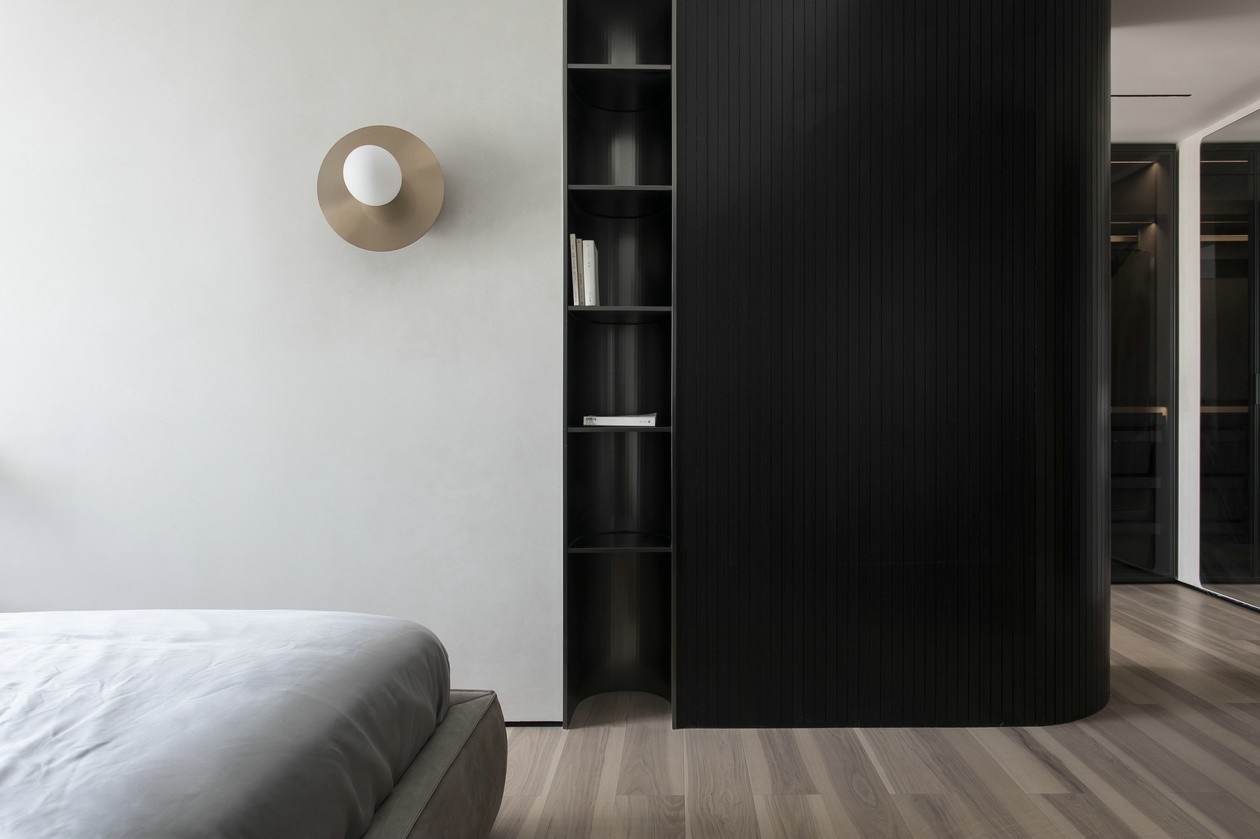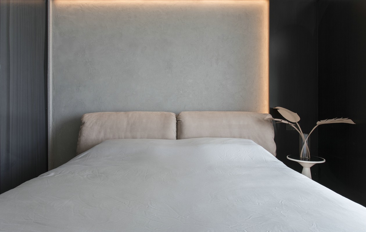 手工漆墻面配上柔和的光暈,產(chǎn)生獨特的光感和肌理,凸顯純粹美感。