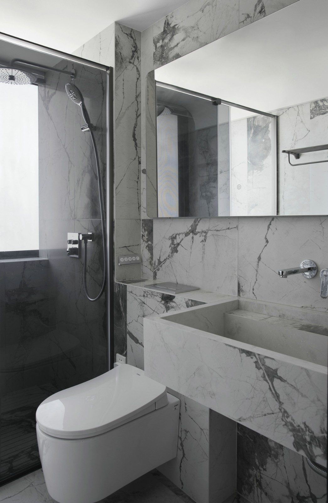 玻璃隔斷反射延伸,利用材質(zhì)本身的透光和反射,無形中放大空間感。