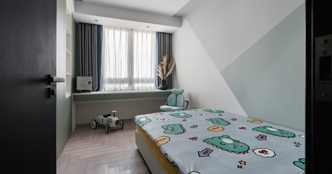 兩個兒童房的空間都比較局限,同時孩子們年紀都還比較小,所以兩個房間的設計都是以簡約為主。