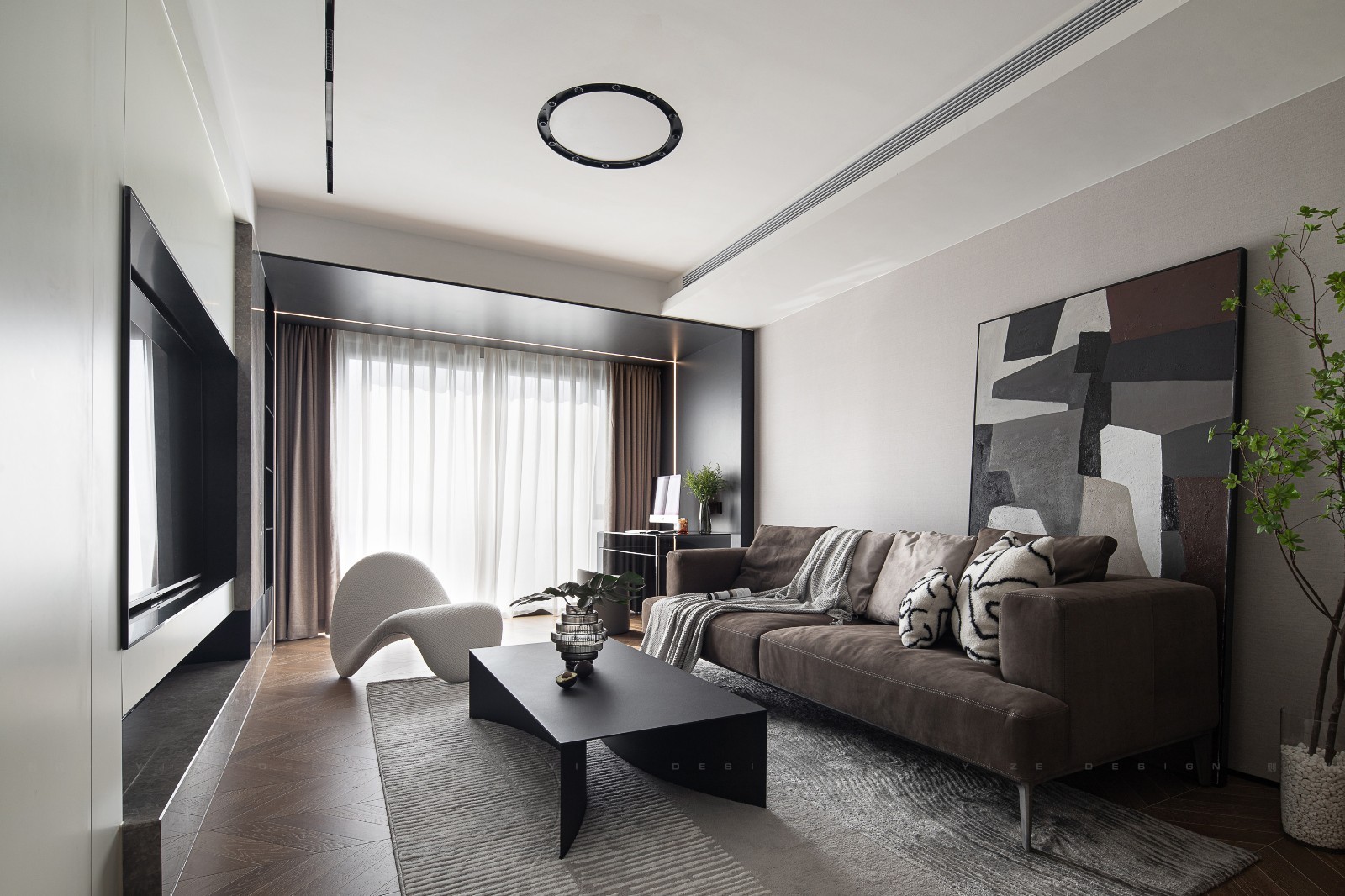 通過簡化空間而接近設(shè)計本質(zhì),尋找一種隱匿的靜謐與和諧, 讓現(xiàn)代生活的舒適浸透在每一個細節(jié)中。 簡約的家具營造出鱗次櫛比的線性棱角。 貓兒在茶幾縫隙中自由穿梭,在毛絨地攤上撒歡打滾。
