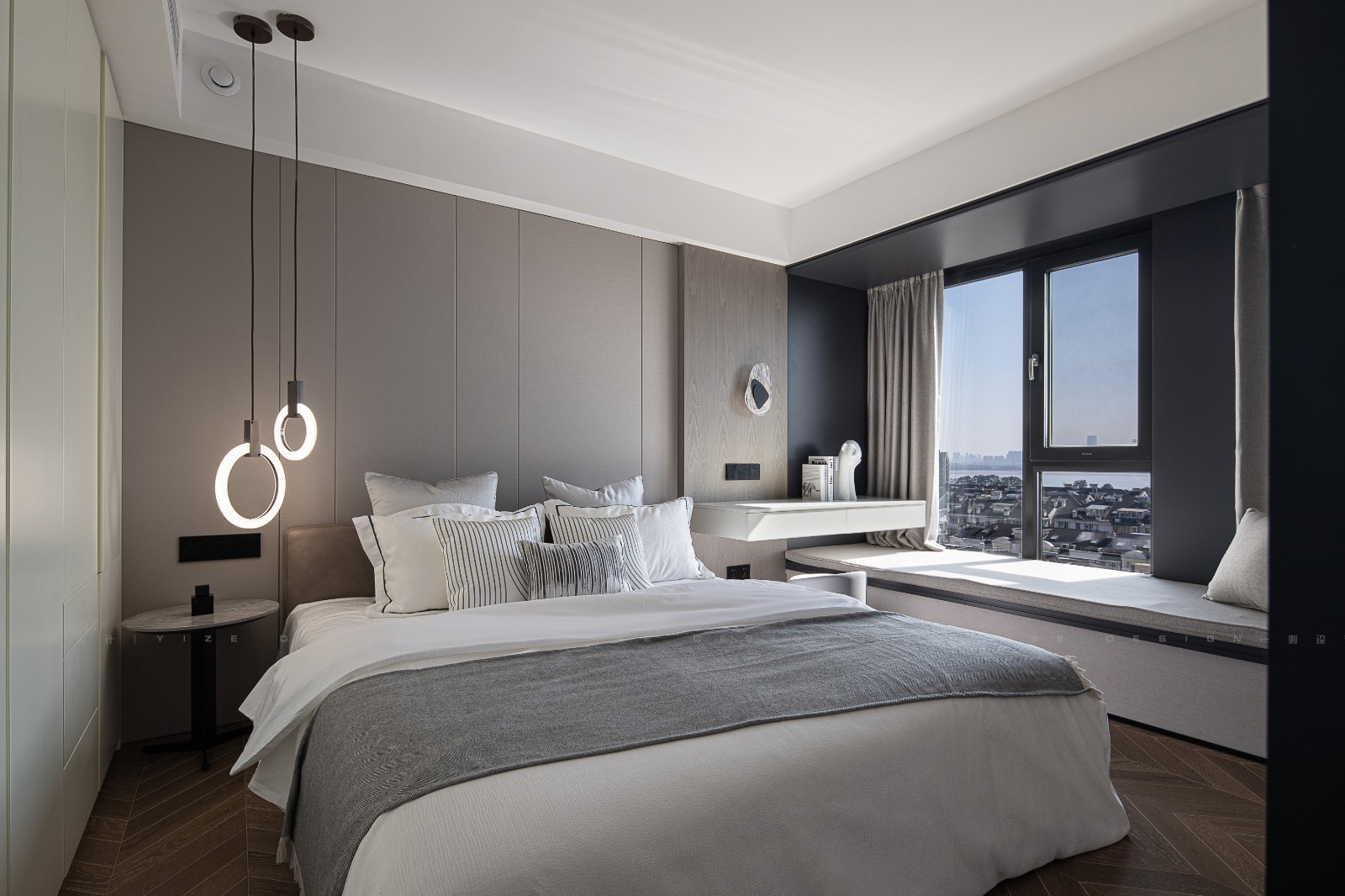 臥室的設(shè)計以簡潔、柔軟為基調(diào),白色床品、 飄窗與米咖色背景墻泛著淡淡的優(yōu)雅與寧靜。 光,穿過窗,灑于空,時隱時現(xiàn), 陽光下的貓咪,高貴而神秘。