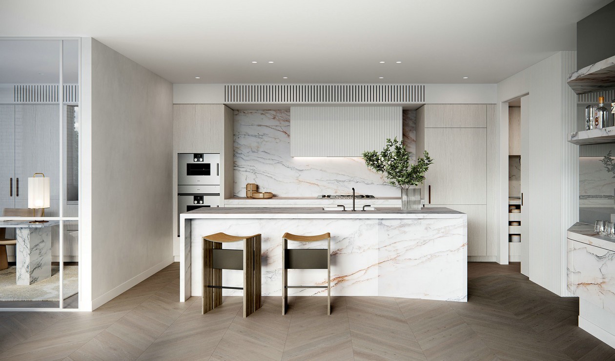 光線充足的起居空間和無(wú)縫的開(kāi)放式廚房提供了一種宏偉的規(guī)模感,通向?qū)閵蕵?lè)和安靜沉思而設(shè)計(jì)的私人露天區(qū)域。
