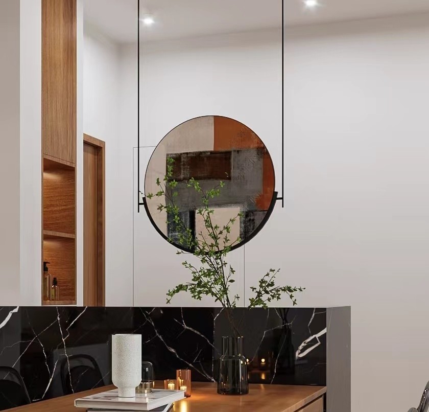 懸掛式鏡面新穎而輕盈,背面也根據(jù)空間色彩定制了畫面,復(fù)古與前衛(wèi)的碰撞帶來了不一樣的美感。
