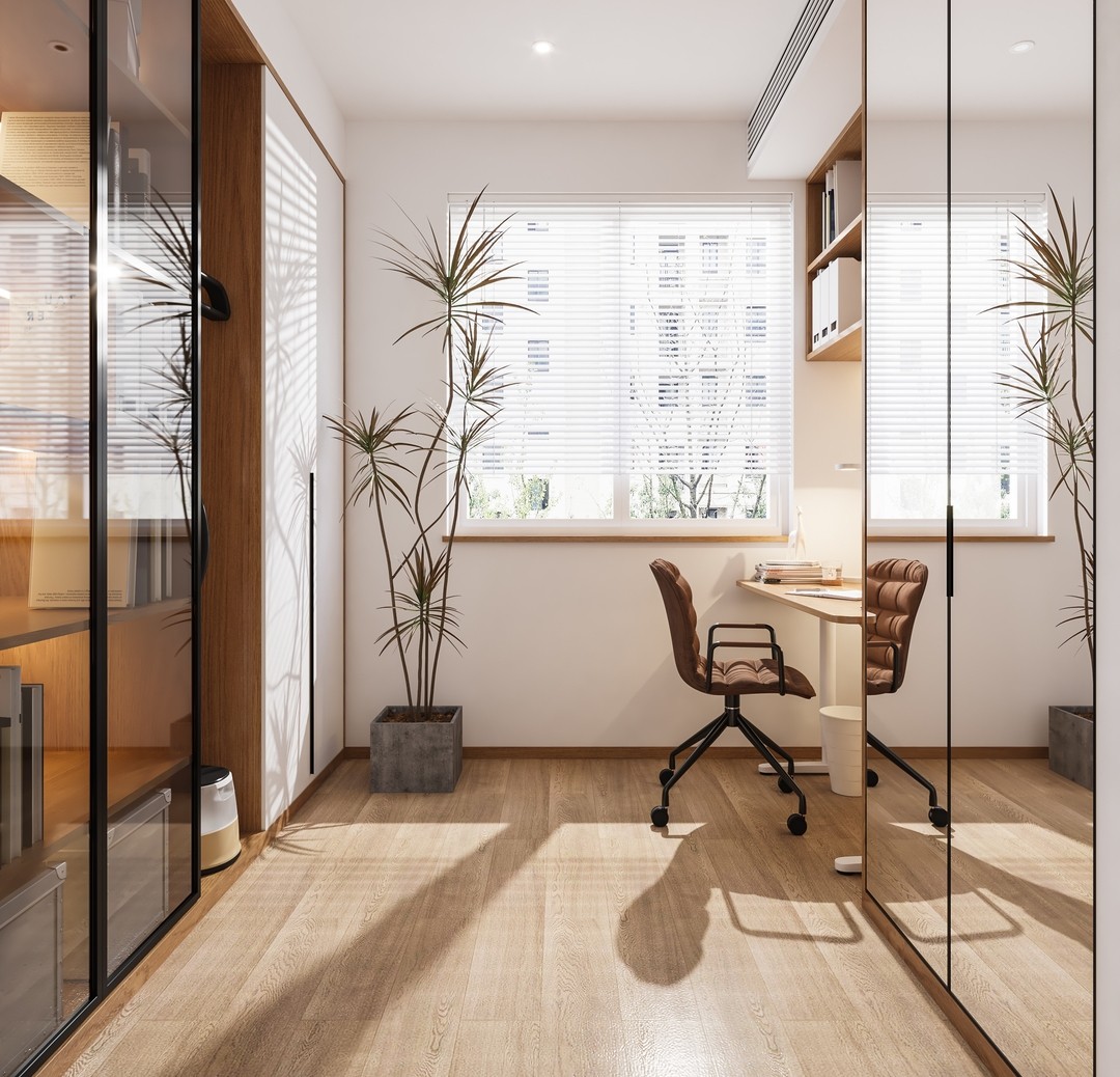 博爾赫斯說,如果有天堂,應(yīng)該是圖書館的模樣。小小的書房空間看似不大,卻是最為寬闊的精神空間。無論外界如何喧囂,進入這個空間,宛如到了一片凈土。一株綠植讓空間富有生命力,鋪滿整個房間的陽光與木色相遇,讓溫暖的情緒與理***織,是讀書、工作再好不過的地方。