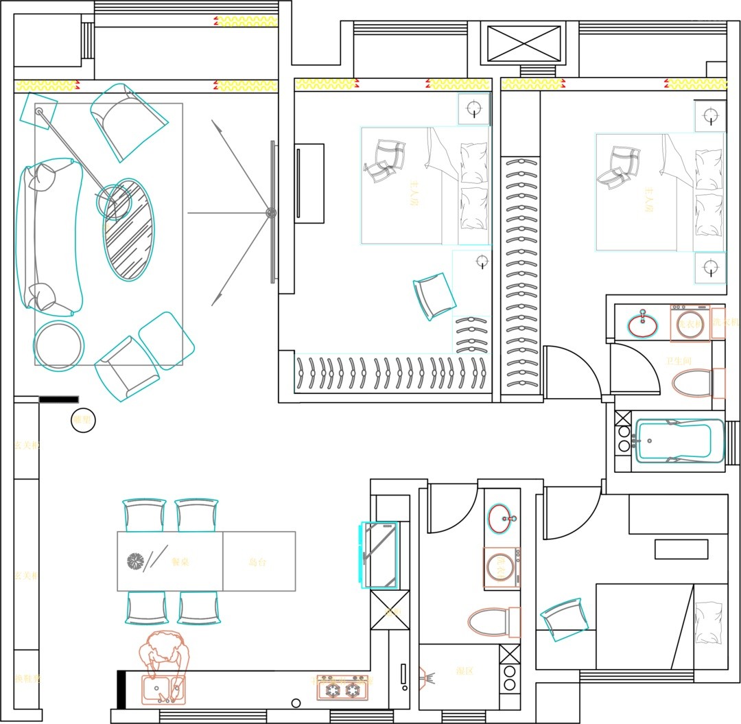 主屋堅持主色調(diào)相一致的原則外,多了些許暖色點綴,將主臥溫馨、和諧、愉悅、靜守時光的相處之道表現(xiàn)得淋漓盡致,隨處可見的還有那些空間的“小心機”。