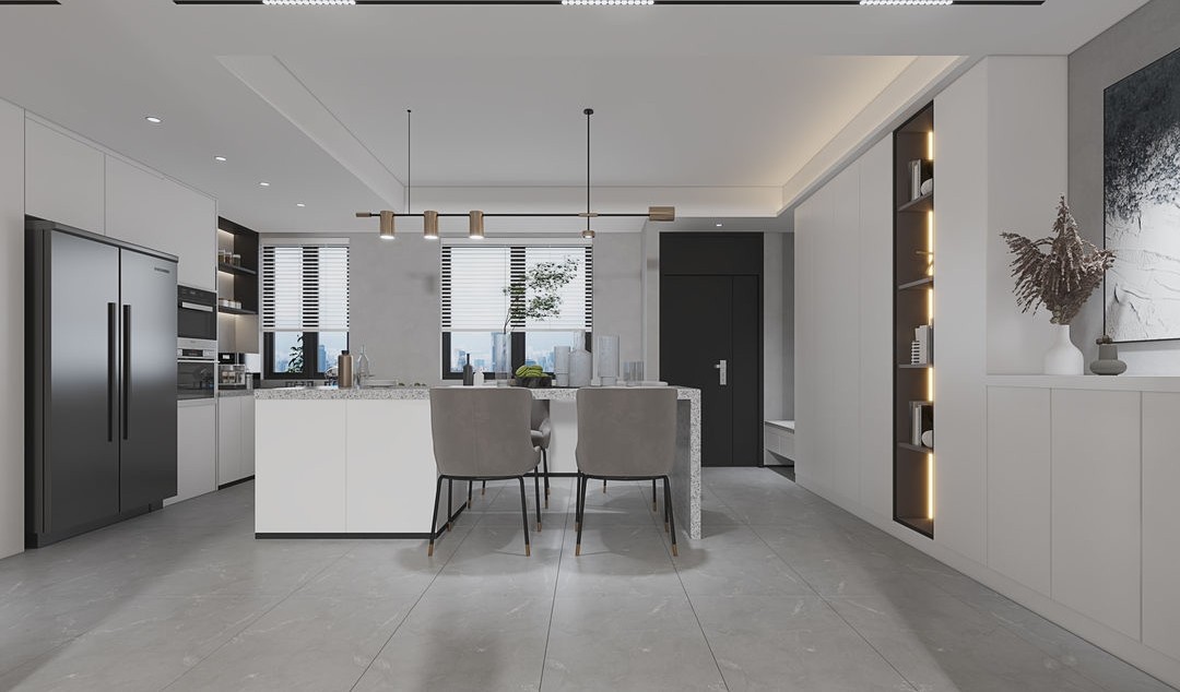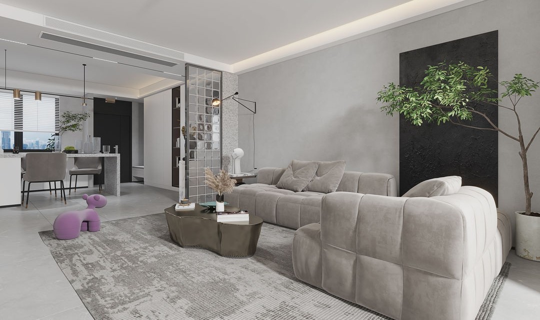 客廳空間主要選用了灰色地磚,簡樸的紋理讓空間有了深層的質(zhì)感。搭配精致的家具、利落的線條,開闊的空間為整個設(shè)計帶來了***舒適的感覺,除了要滿足正常的生活需求外,也要對藝術(shù)的審美得到展現(xiàn)。