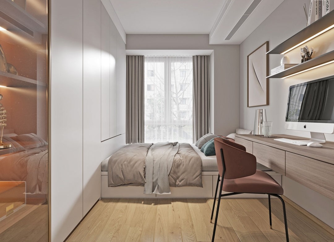 榻榻米+書桌+柜體一體化設(shè)計(jì),整體定制能充分利用房間的邊邊角角,簡(jiǎn)直就是小臥室的福音。