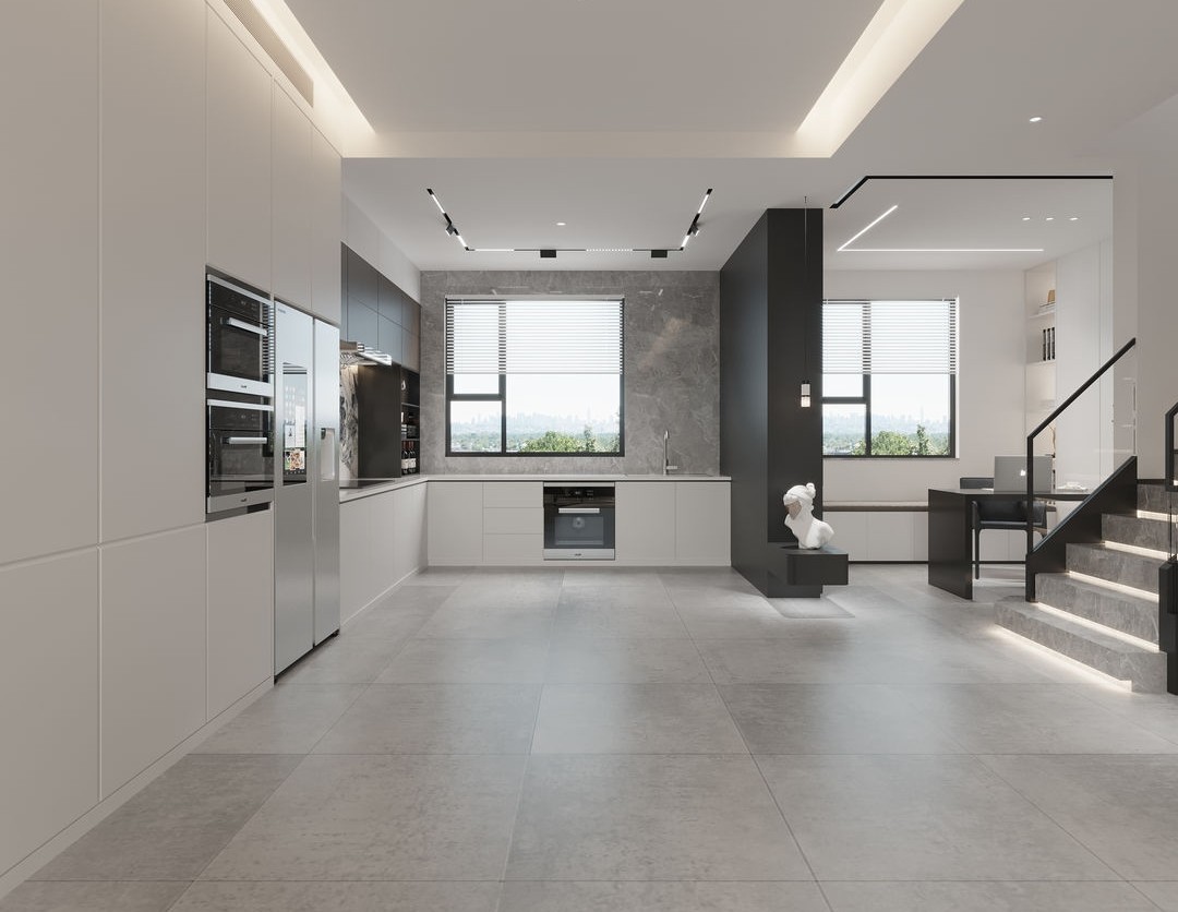 中西廚的設(shè)計(jì)滿足了所有人居住的使用需求。 中廚擁有完善的廚房設(shè)備,各種菜系都能駕馭 ,無懼油煙;西廚區(qū)域以定制的長(zhǎng)吧臺(tái)融入公 共區(qū)域,可隨時(shí)看到孩子的動(dòng)靜,也能享受與親友無拘束的互動(dòng)樂趣,無論是視覺上還是使 用上都擁有***體驗(yàn)。大面積的到頂櫥柜,滿足女主人的儲(chǔ)物需求。