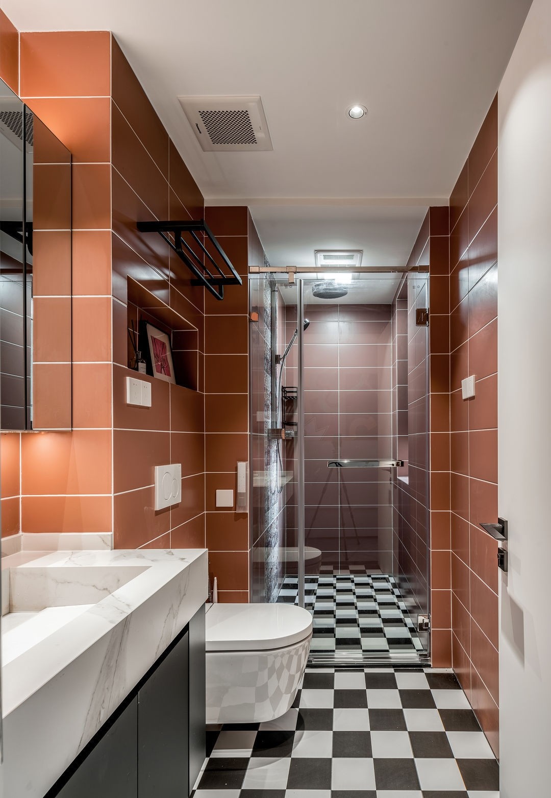 衛(wèi)生間運(yùn)用深黃色的墻磚