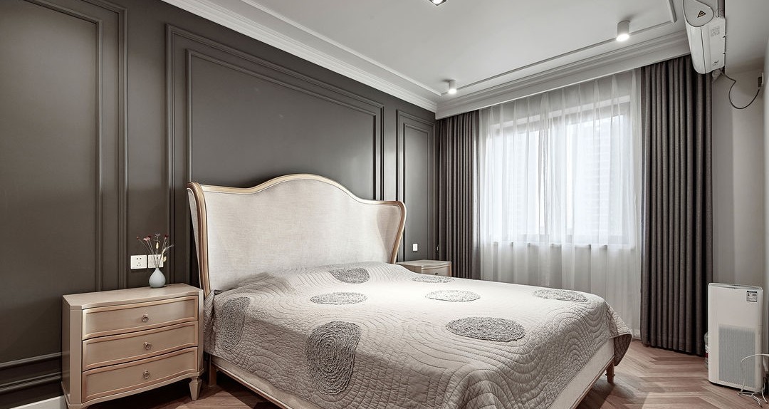 臥室同樣是無主燈,且臥室不需要太明亮的光線,射燈點光足矣。