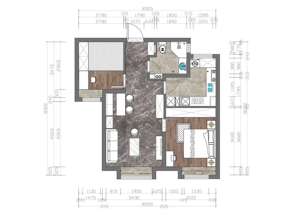 Tiffany藍(lán)讓空間時(shí)尚而更有層次,因?yàn)榭蛷d的面積不算太大,所以盡量用簡(jiǎn)潔的布置來讓它顯得更加寬敞一些??筒蛷d開放一體,并未做故意區(qū)分,連通一體的空間格調(diào)一致,顯得更加寬敞舒適,使家人之間的溝通更為順暢。