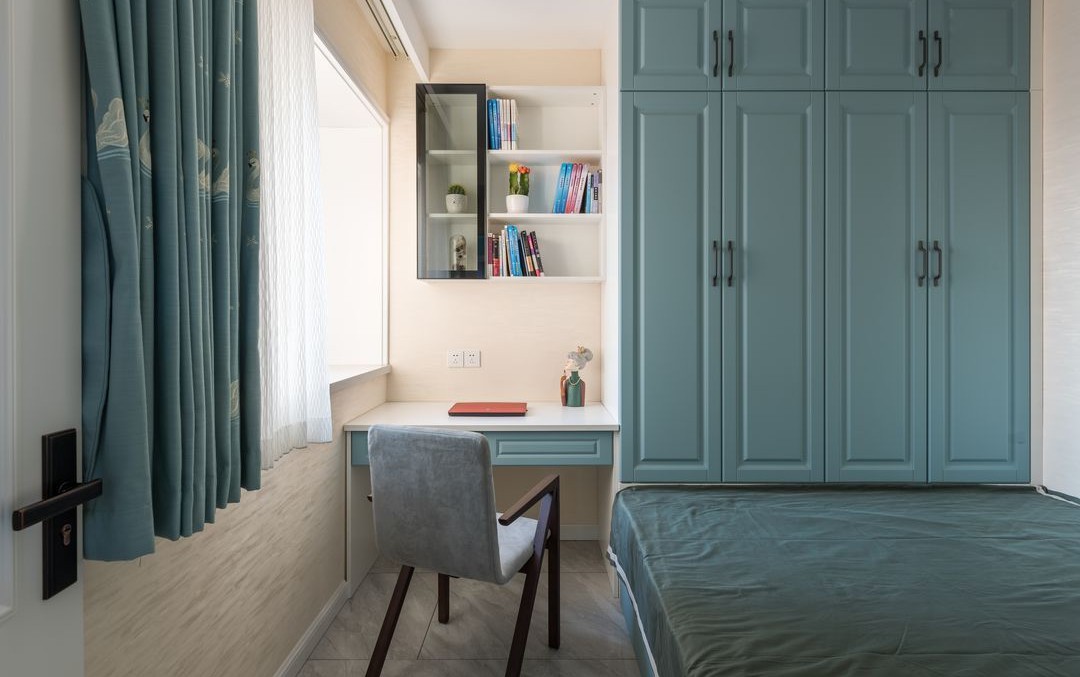 次臥合理利用空間,打造了榻榻米和整面衣柜,讓次臥同時(shí)擁有了客房、獨(dú)立書房等多重功能。
