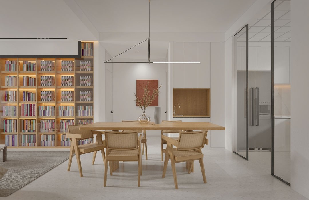 客廳摒棄了傳統(tǒng)的電視背景墻的設計,給人***感覺就是純凈,簡約而有質(zhì)感,整體空間都為暖色系,呈現(xiàn)出簡潔大氣的視覺效果。書柜+收納柜書桌的組合,充分利用了每一平空間,既能作家庭儲物收納也能作為藏品展示區(qū)域。整個空間無主燈設計,讓整個家看起來更簡潔利落。