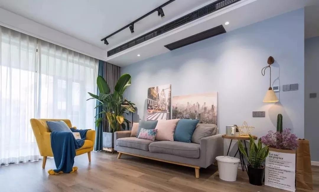 今天分享的是一套建筑面積109平的北歐風三居室案例,設計師以灰色和藍色作為主色調,搭配各種精致的軟裝來構造一個小清新的家。