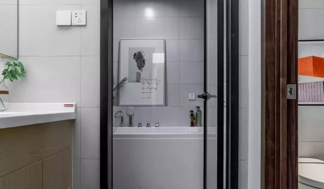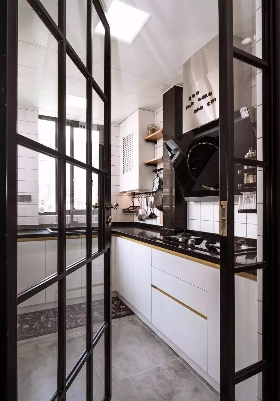 廚房和餐廳之間用黑框玻璃隔斷門作為隔斷,起到避免油煙的效果