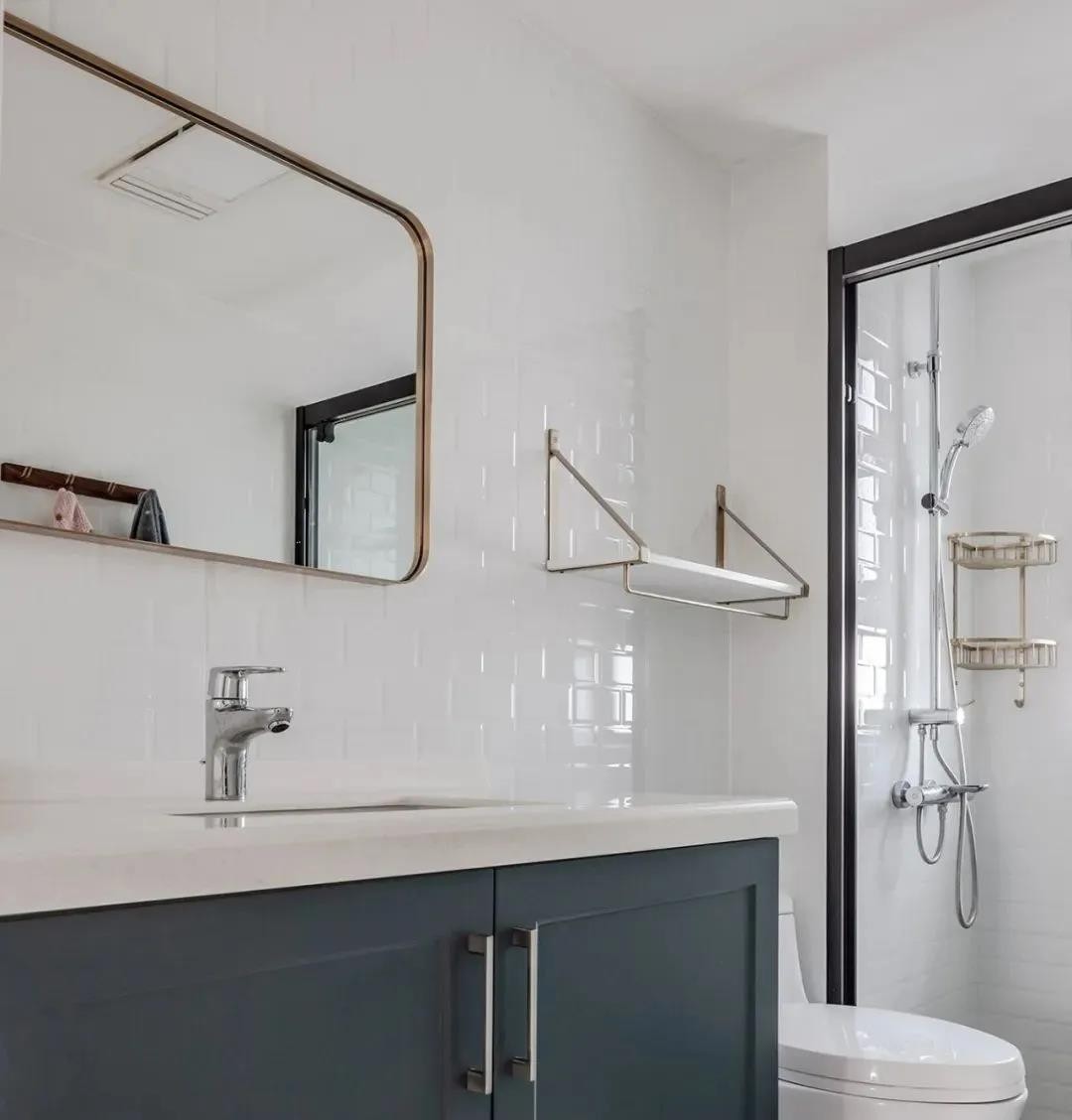 白色系主衛(wèi),定制整排臺盆柜結(jié)合鏡柜的設(shè)計,收納功能強大