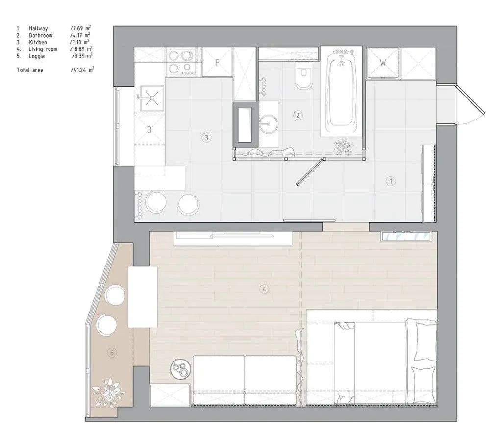 L型廚房,以黑白+原木為主色調(diào),是小戶型設(shè)計中不會出錯的選擇。