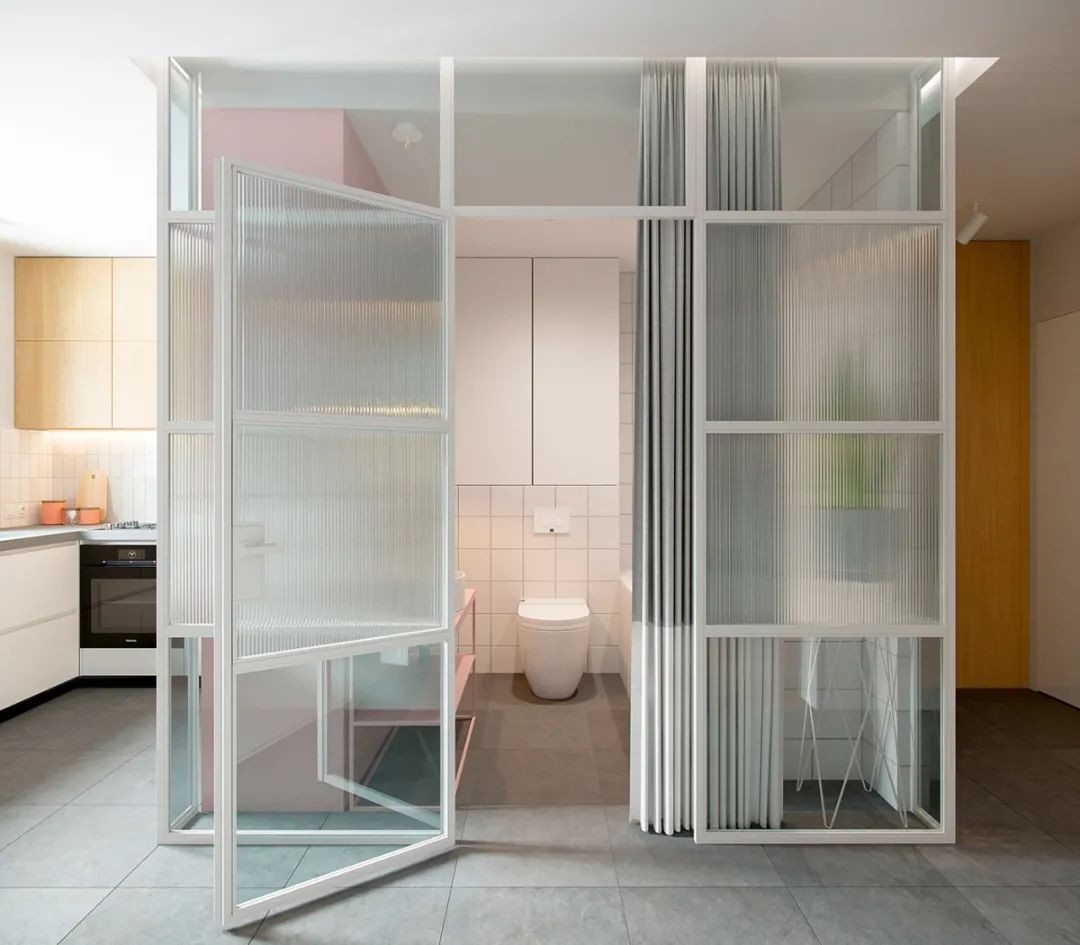 墻排馬桶,隔斷底部和頂部選擇透明玻璃,增加通透感。