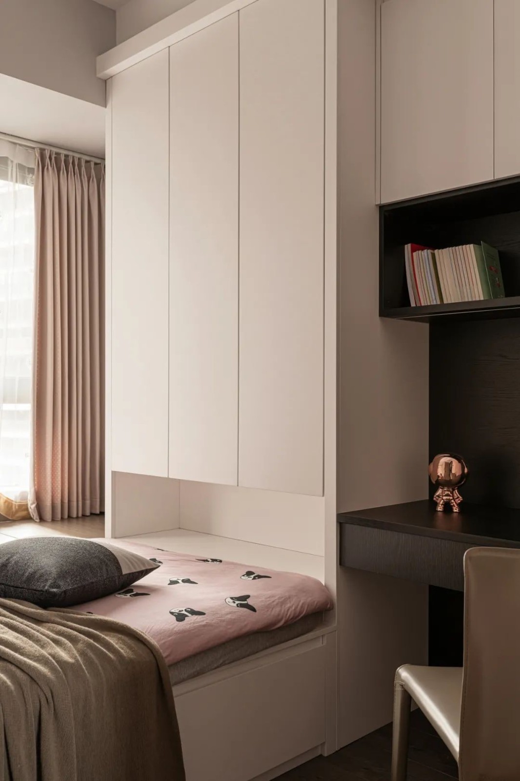 房間內(nèi)設(shè)計榻榻米,增加收納空間,房間也更整潔。