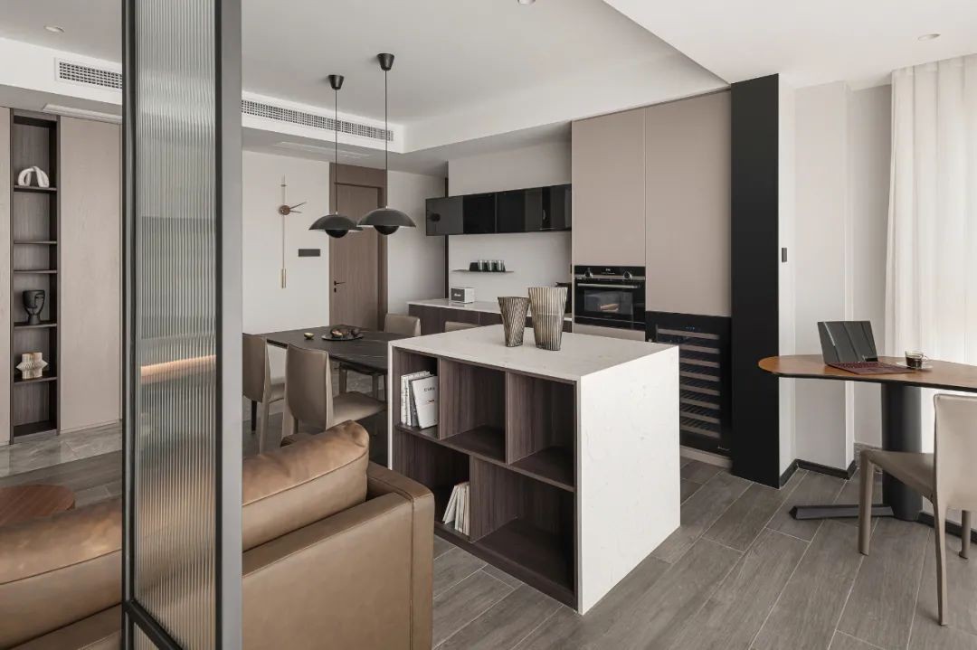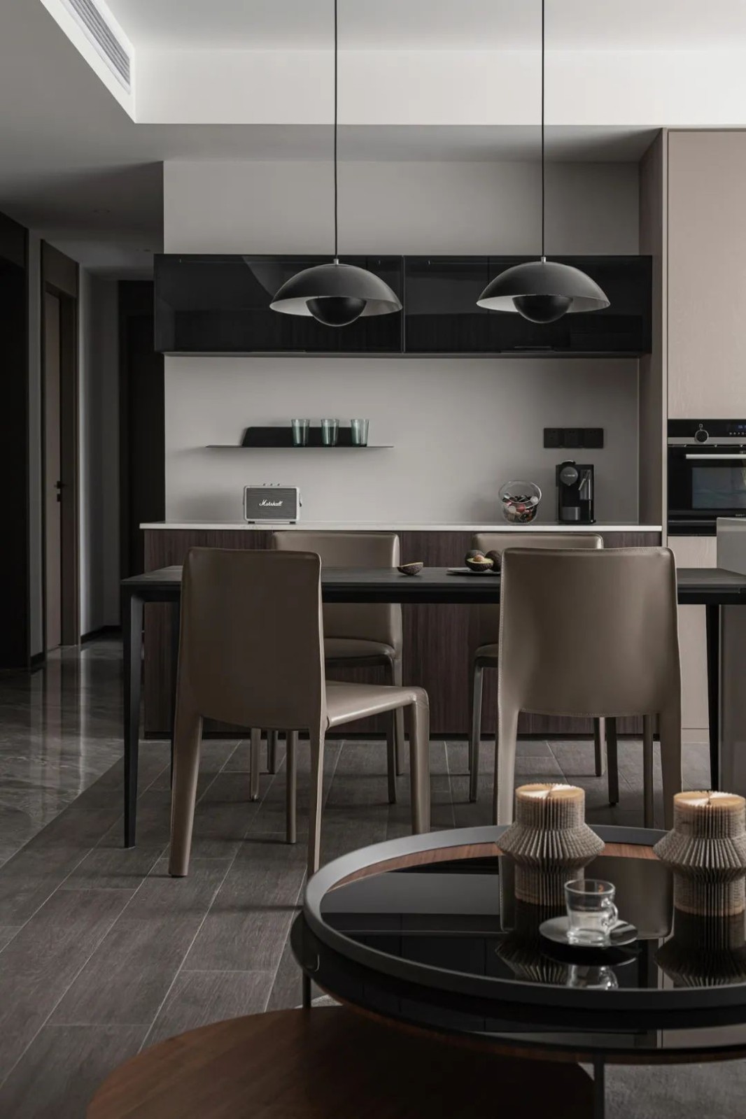 餐廳是女主人非常中意的空間,一分為二,形成用餐+西廚區(qū)域。