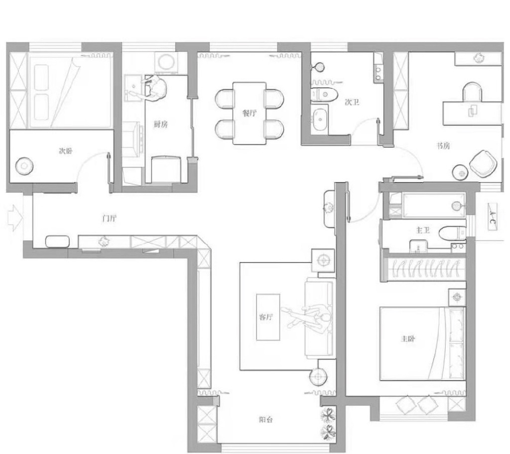 3平米的主衛(wèi)滿足了浴缸坐便器及手盆個(gè)性化需求