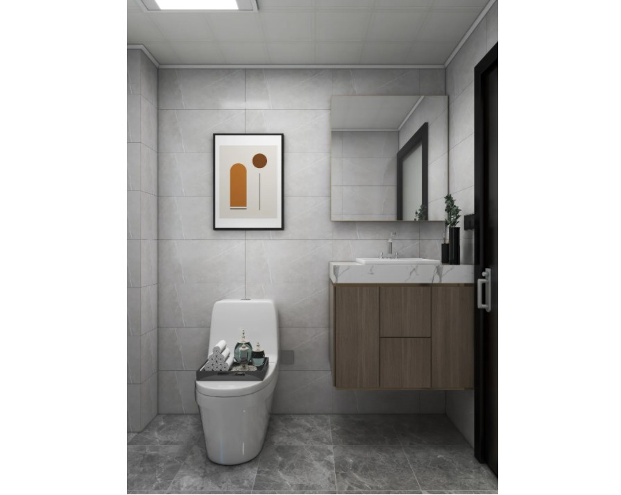 墻面以集成墻面為主,吊頂采用傳統(tǒng)材料工藝,很經(jīng)典的現(xiàn)代風(fēng)搭配。