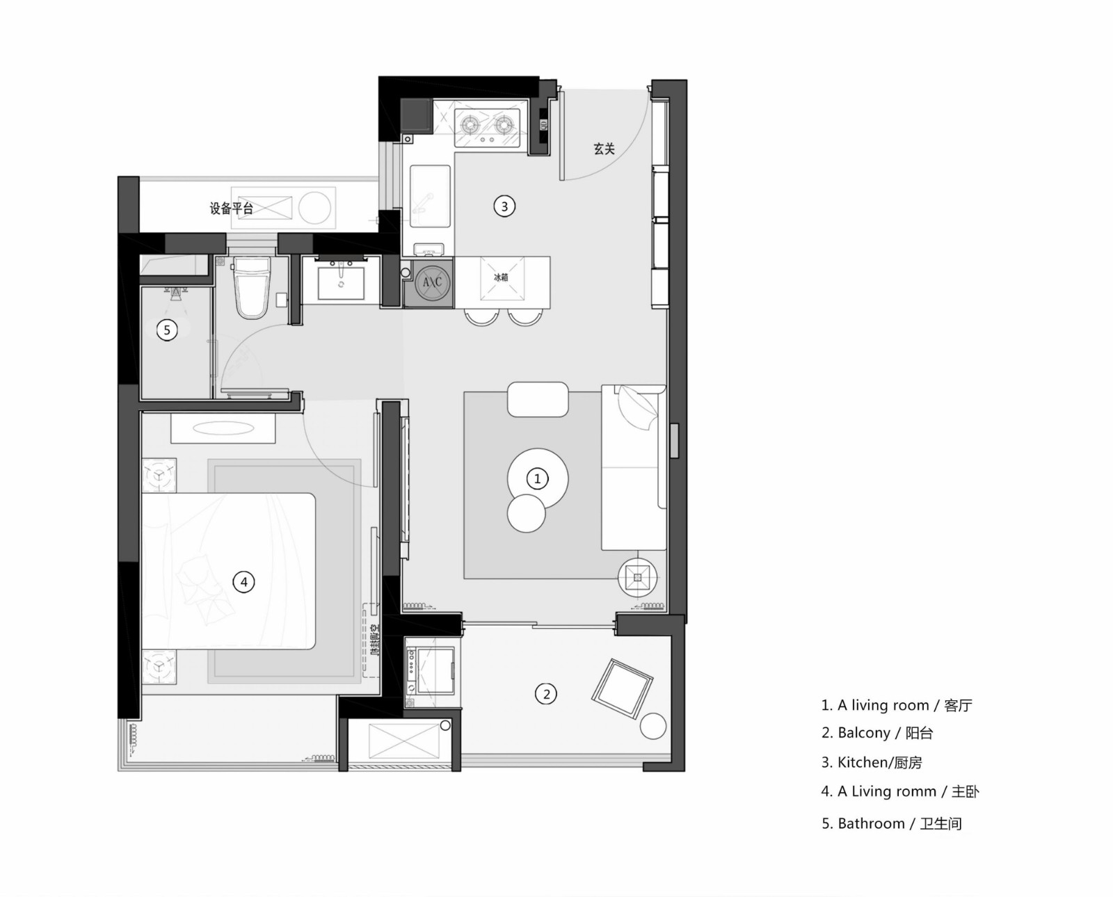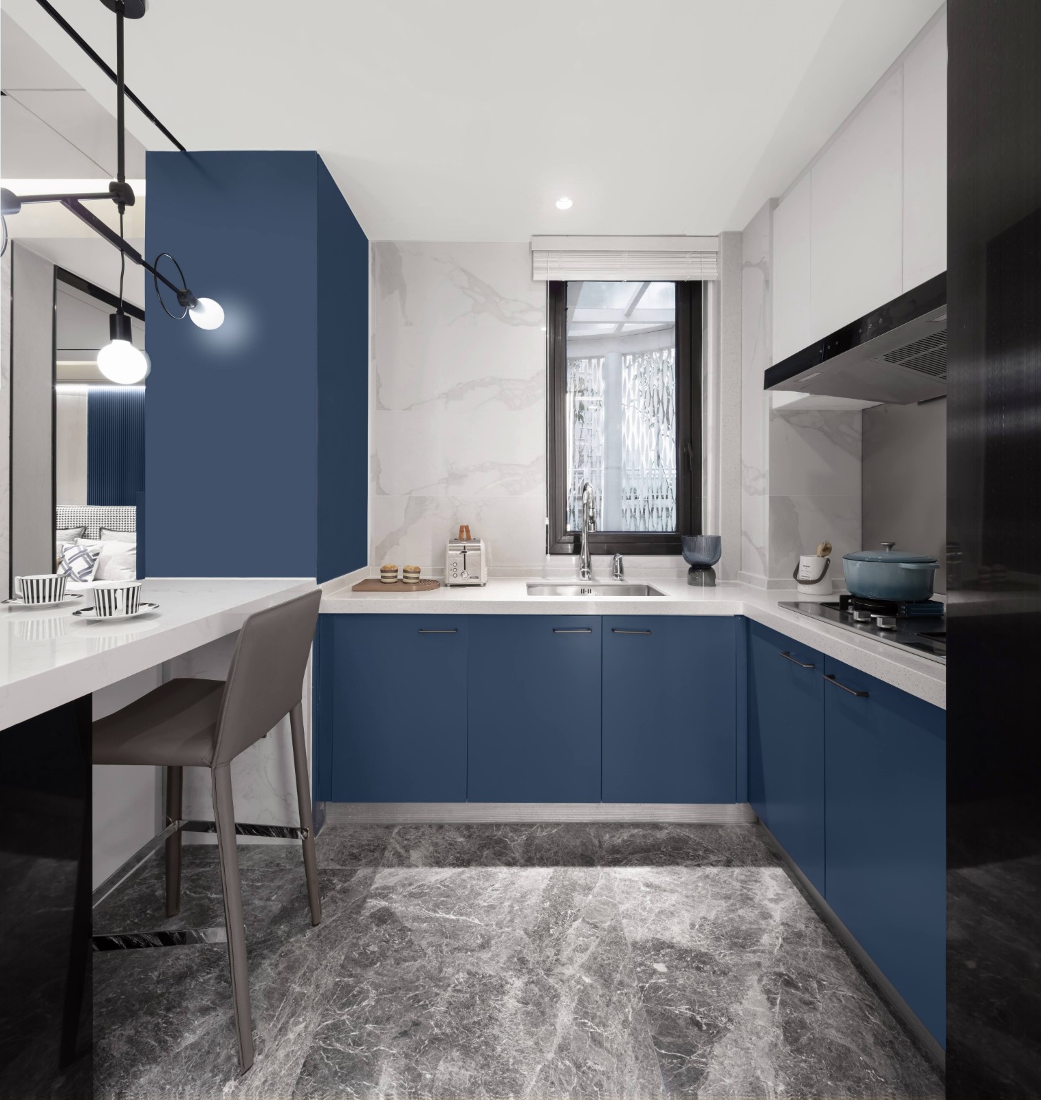 開放式廚房讓空間減少封閉感,敞開式空間,點與線、線與面、虛與實,線條和色彩簡潔而不缺趣味,營造整體空間的節(jié)奏感和藝術(shù)感,讓空間通透且干凈。