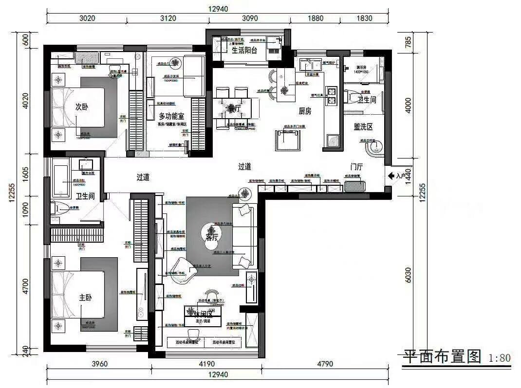 三室二廳戶型,客戶要求簡單大方,儲(chǔ)物性要多