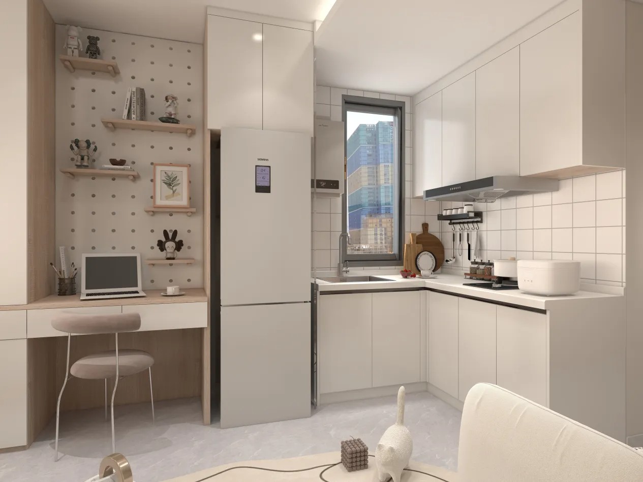 櫥柜采用白色色調(diào),主要調(diào)和整個空間。
