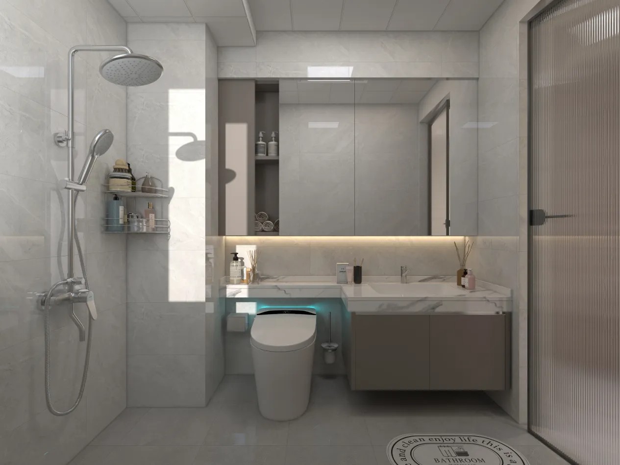 采用極簡手法,柜面采用原木色,臺面為自然紋路大理石,使自然的造型與紋理呈現(xiàn)于空間中。