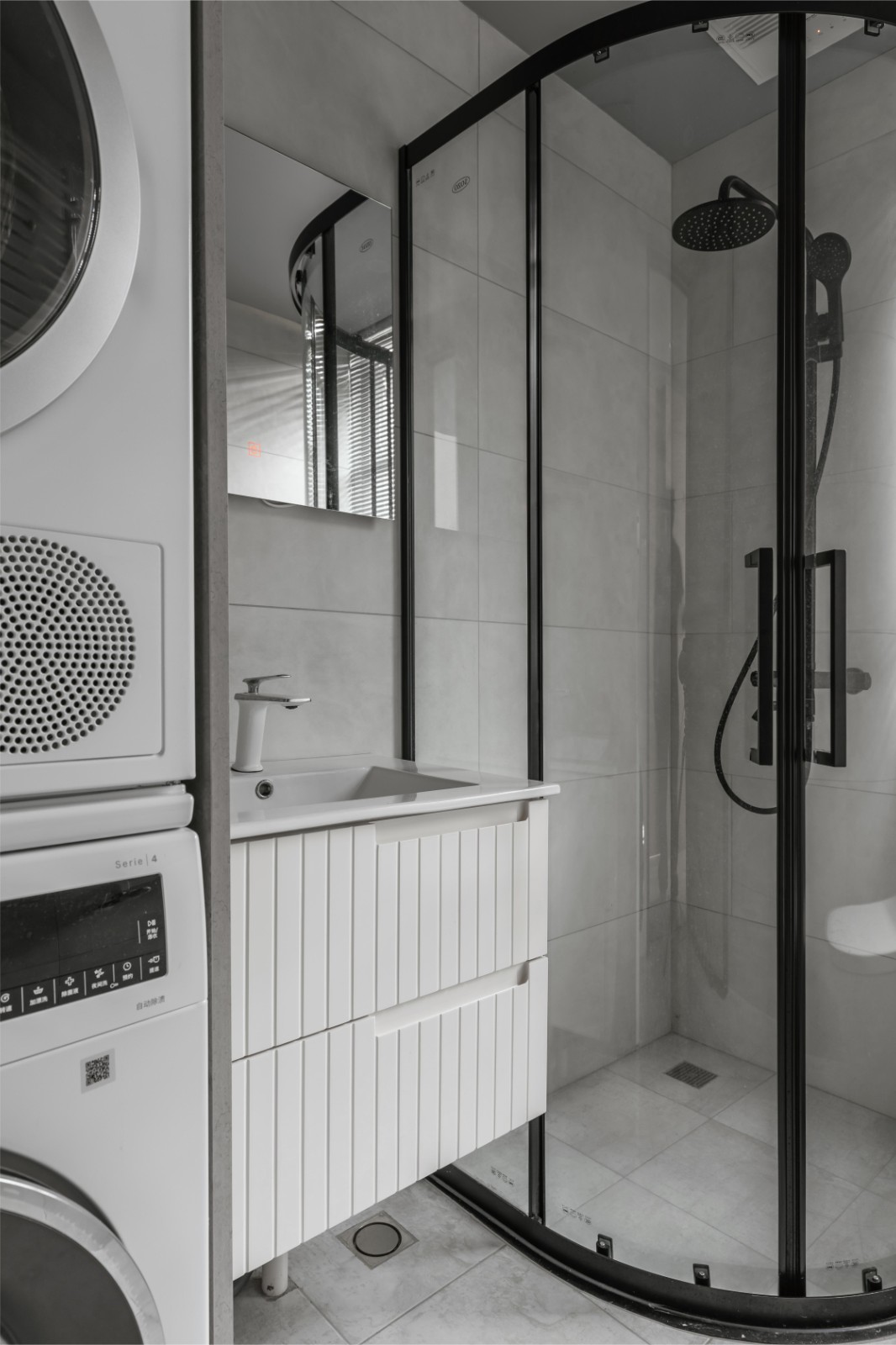 爸爸媽媽為了女兒們公共空間有足夠多的玩耍機會,決定把 洗衣機烘干機放在自己房間的主衛(wèi)里了,使得主衛(wèi)很緊湊!