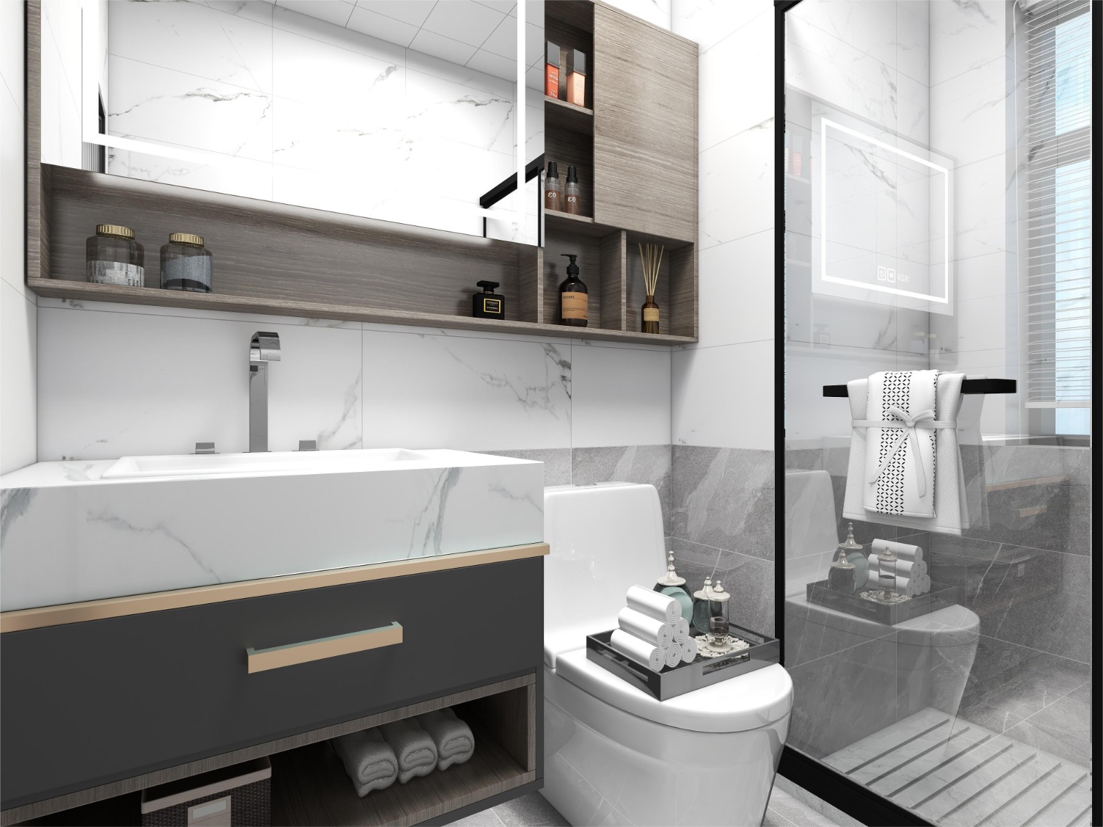 次衛(wèi)利用淋浴房做成了干濕分離,讓后期的衛(wèi)生更加的好收拾