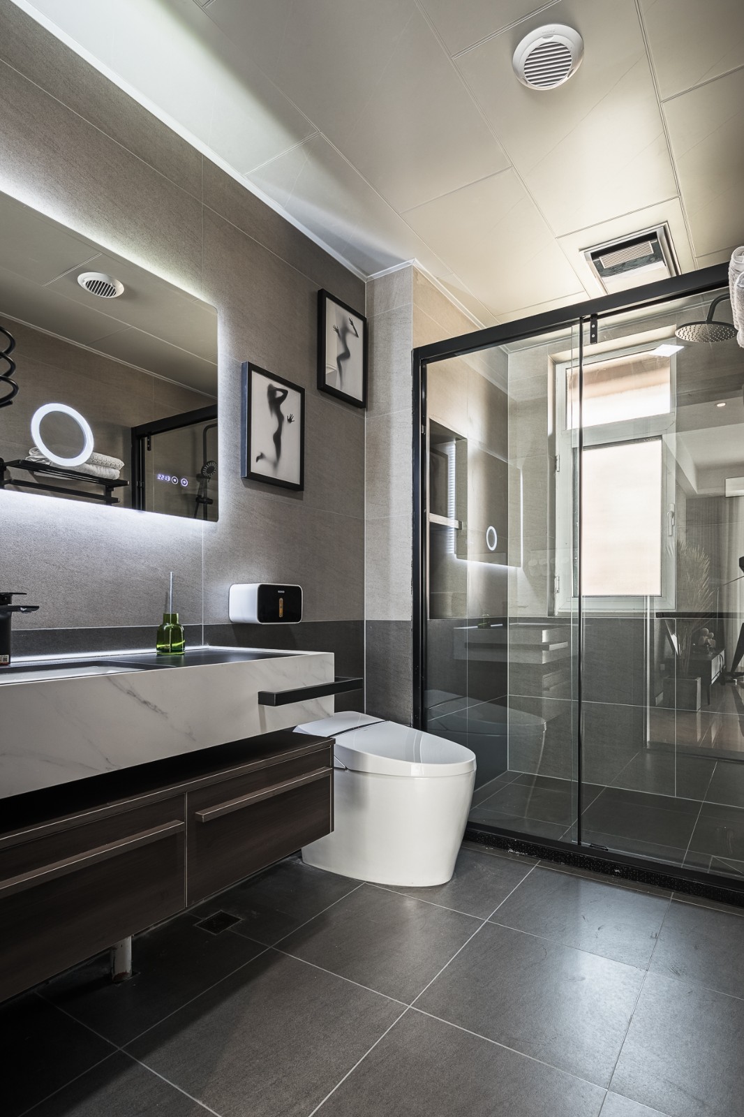 衛(wèi)生間的鏡柜縫隙間的光源設(shè)計(jì)使得空間更有層次感,給人一種舒適的低調(diào)體驗(yàn)。