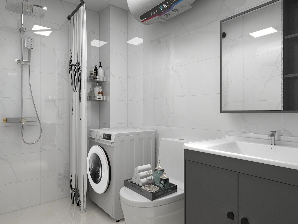 衛(wèi)生間淋浴區(qū)做拉簾隔斷防止水濺到洗衣機(jī)上