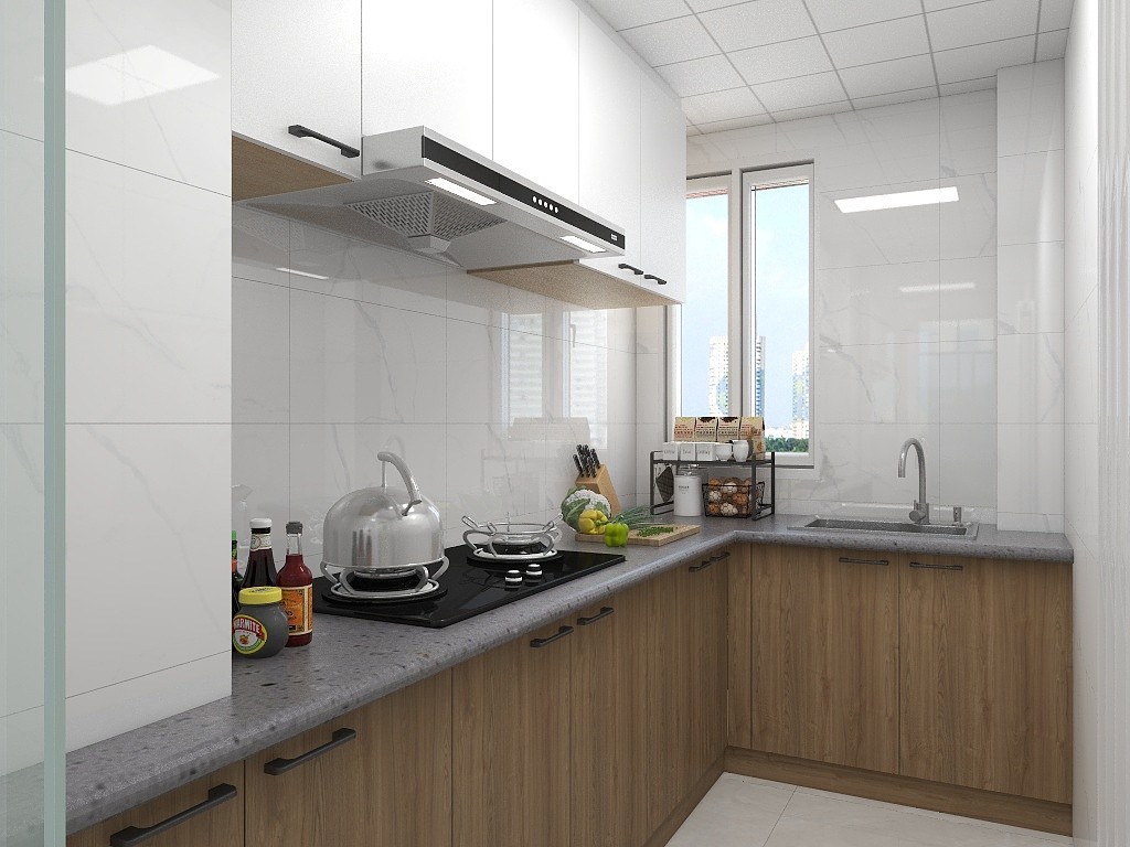 廚房做了深色地柜搭配灰色石英石臺(tái)面