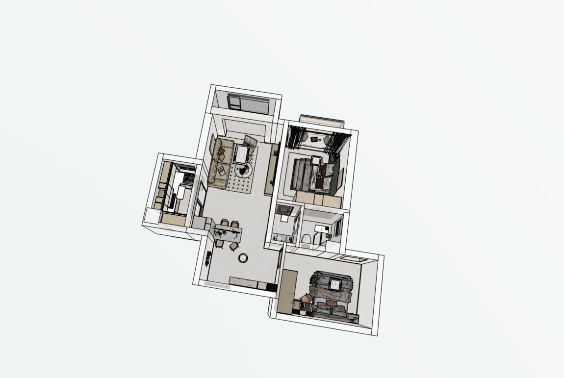 兩室兩廳一廚一衛(wèi)一陽臺.戶型通透