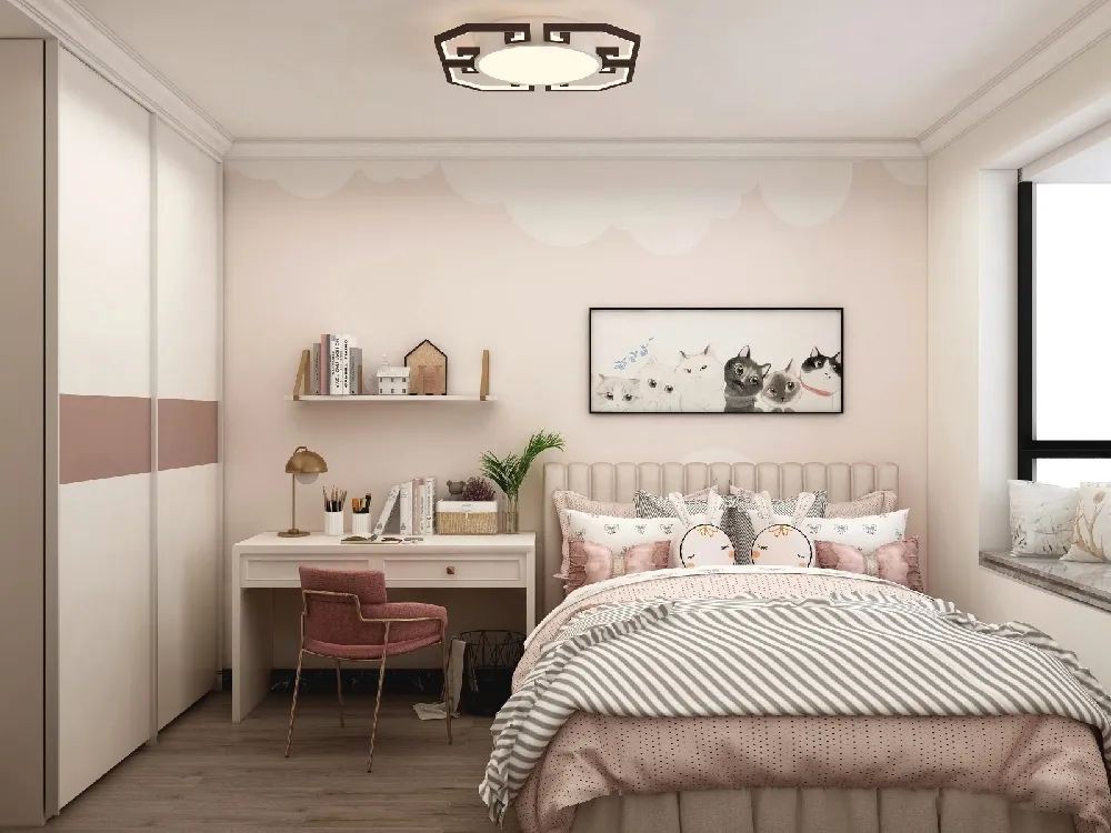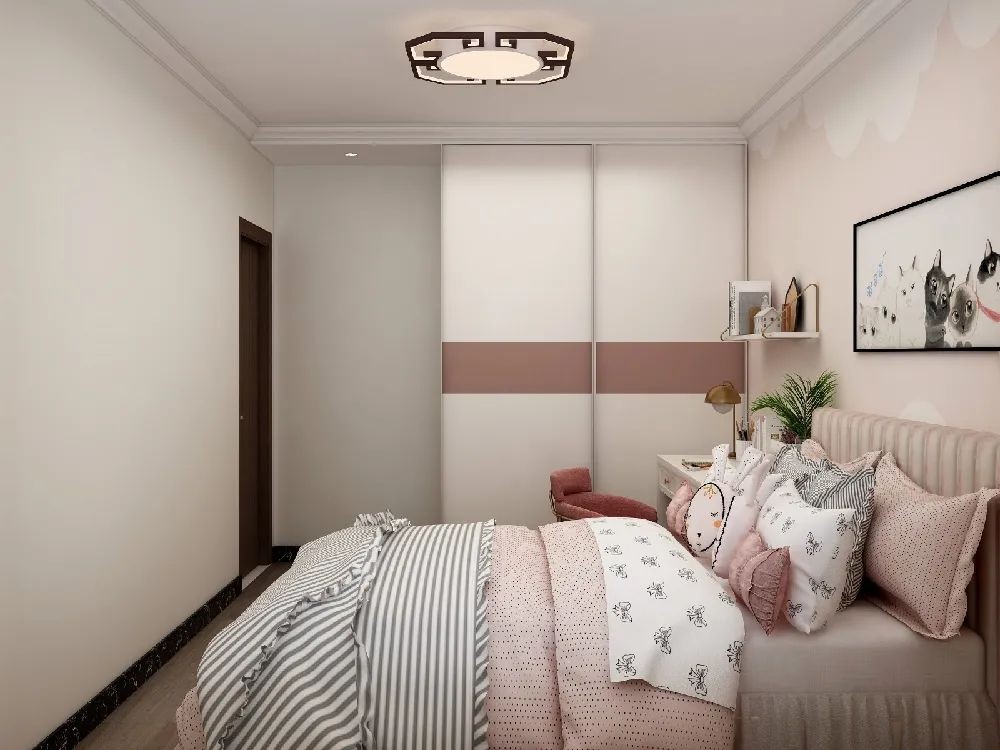 淡粉色的墻面基礎(chǔ)搭配黑色皮質(zhì)床,