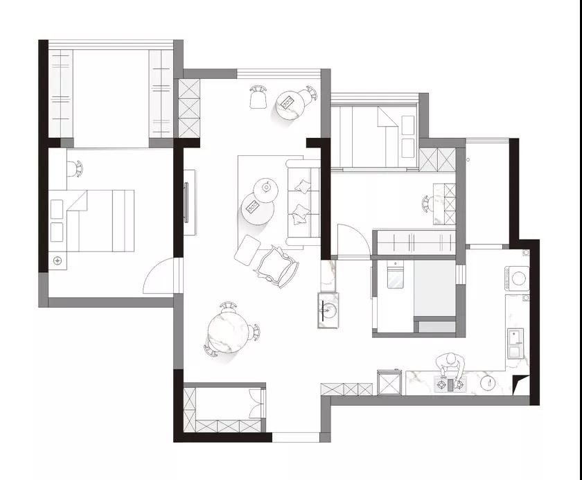 衛(wèi)生間采用三式分離,如廁、洗漱、淋浴分別在不同的區(qū)域,多人使用互不干擾。