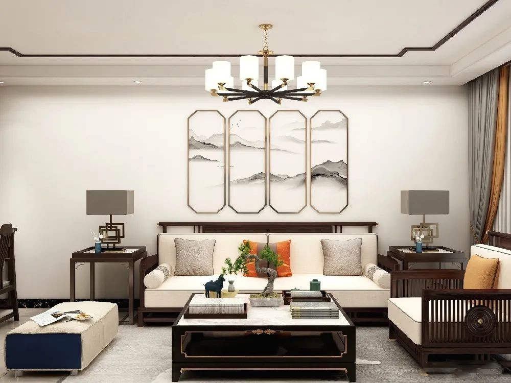 中式風(fēng)格所帶入的空間精神定會(huì)為之而感動(dòng),沙發(fā)背景融合了