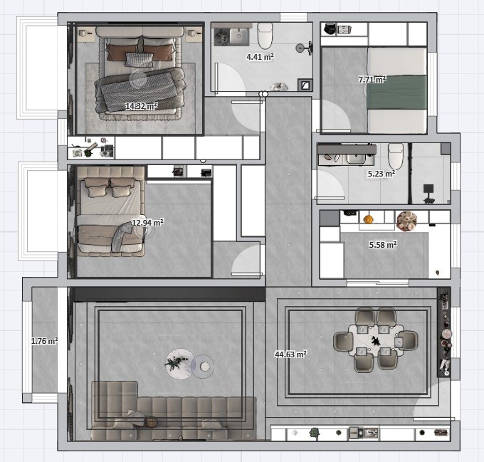 三室兩廳一廚兩衛(wèi) 全屋中央空調